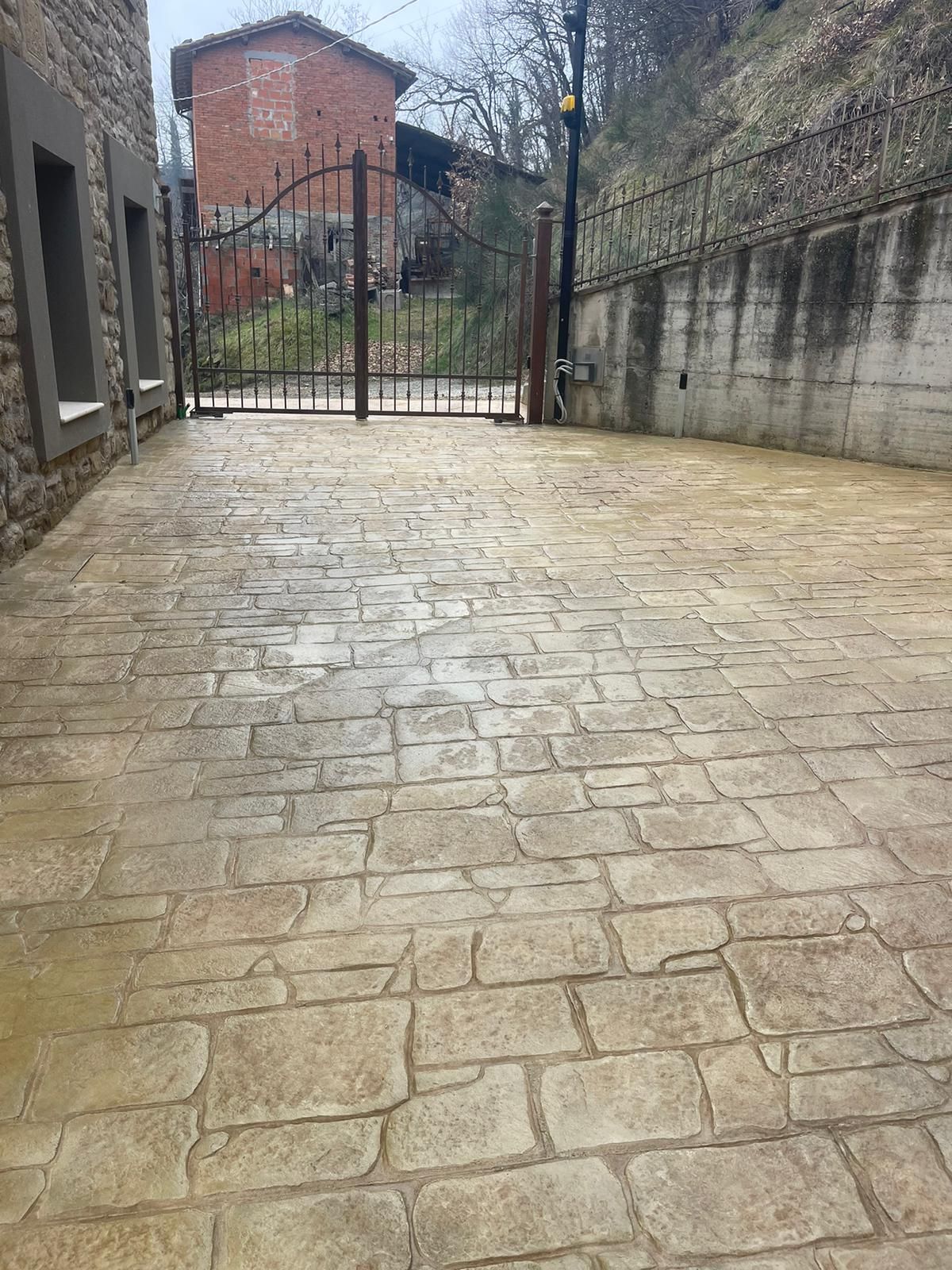 Per migliorare ulteriormente la profondità e il contrasto del pavimento stampato, si possono applicare velature o patine colorate, che enfatizzano i dettagli della texture. Questo metodo prevede l’applicazione di strati sottili di colore traslucido che accentuano le zone di rilievo, migliorando l’effetto tridimensionale.