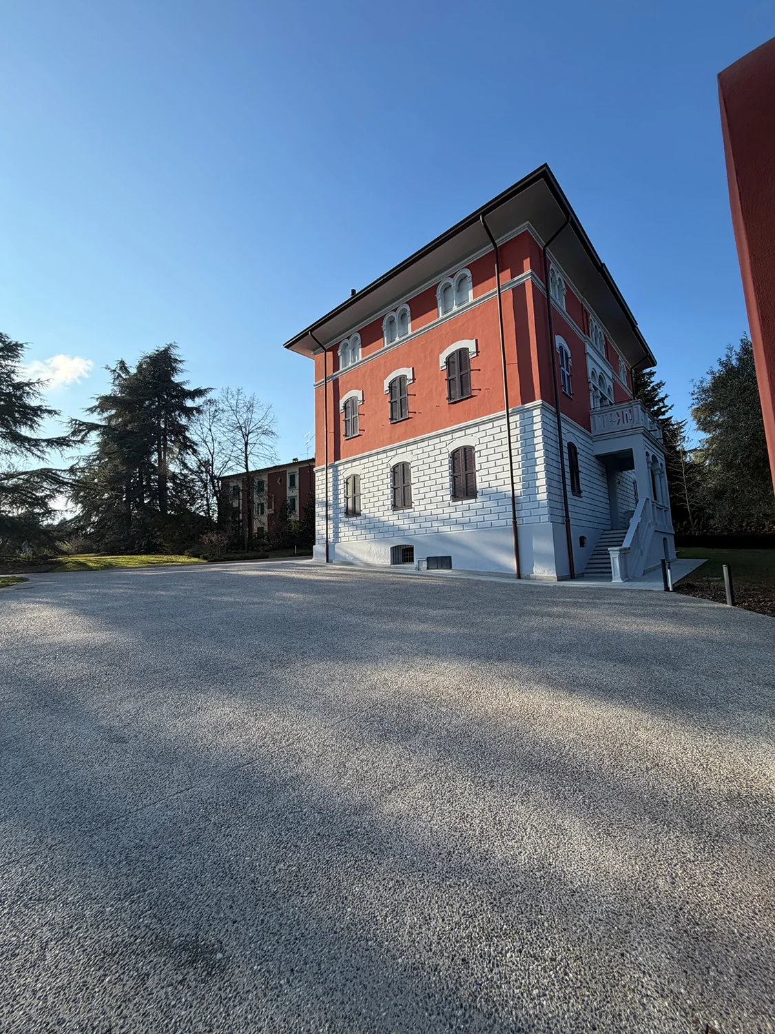 Emilpav ha realizzato circa 1.200 metri quadrati di pavimentazione in ghiaia lavata presso una villa Liberty nel centro di Traversetolo, in provincia di Parma. L’intervento ha completamente trasformato il cortile e le aree esterne della proprietà, creando vialetti eleganti, spazi ricreativi e zone pedonali dal design raffinato, perfettamente integrate con lo stile architettonico d’epoca della villa.