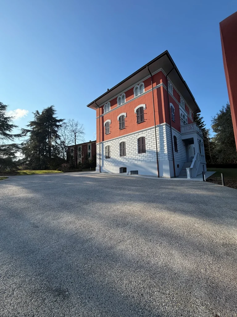 Emilpav ha realizzato circa 1.200 metri quadrati di pavimentazione in ghiaia lavata presso una villa Liberty nel centro di Traversetolo, in provincia di Parma. L’intervento ha completamente trasformato il cortile e le aree esterne della proprietà, creando vialetti eleganti, spazi ricreativi e zone pedonali dal design raffinato, perfettamente integrate con lo stile architettonico d’epoca della villa. La pavimentazione architettonica in ghiaino lavato Emilpav è la soluzione […]